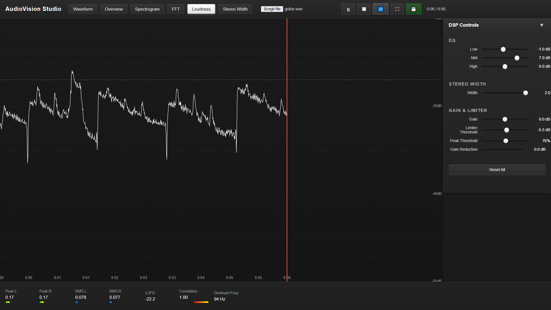 - Loudness Timeline – BS.1770-compliant LUFS (momentary, short-term, integrated)