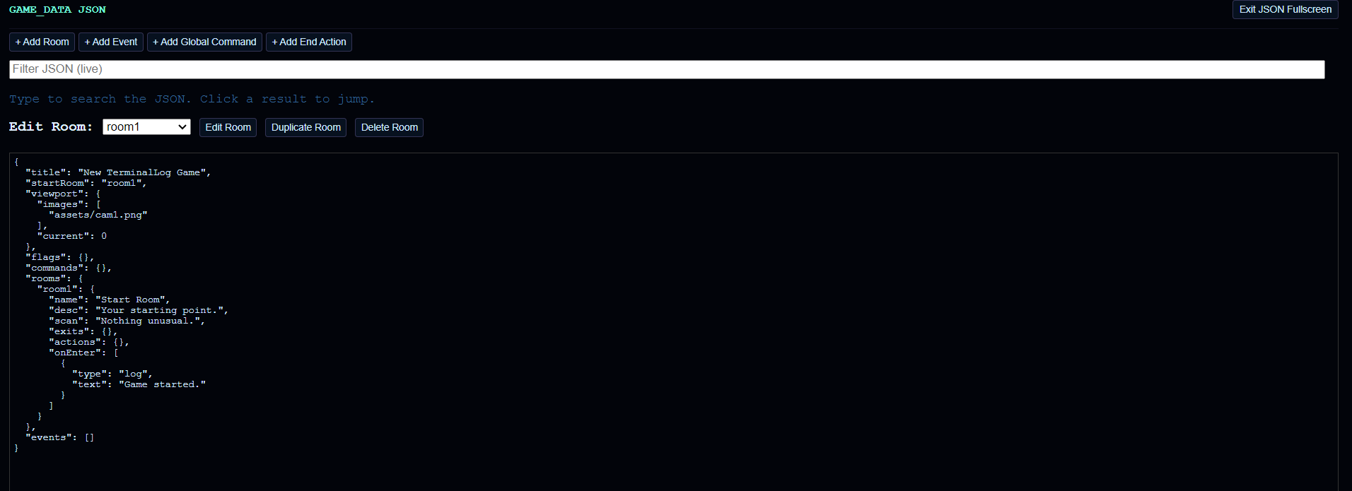You can now expand the JSON editor viewport to fullscreen with a single click. This gives you all the space you need to comfortably work on your game_data files—especially useful for large projects.